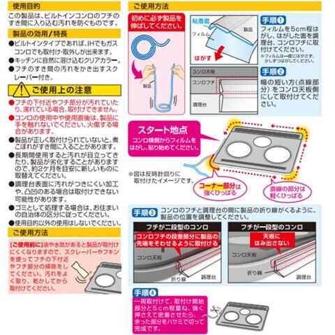 ぴったりフィットコンロと調理台の間に沿わせて一周、フィットさせるだけ。