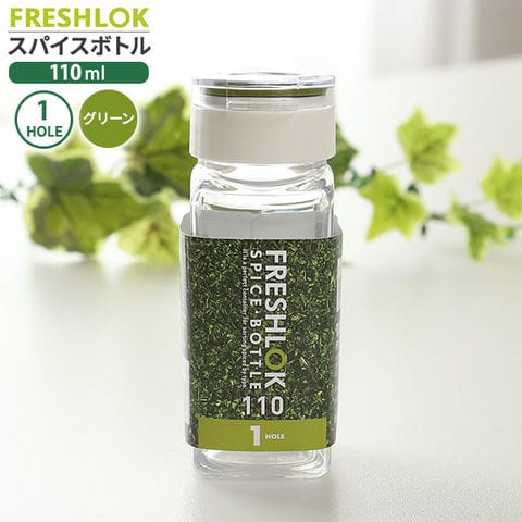 フレッシュロック スパイスボトル 1ホール 110ml グリーン(緑パッキン) | 調味料 保存容器 密閉 詰め替え ボトル プラスチック キッチン 収納 塩 胡椒 1穴 FRESHLOK TAKEYA