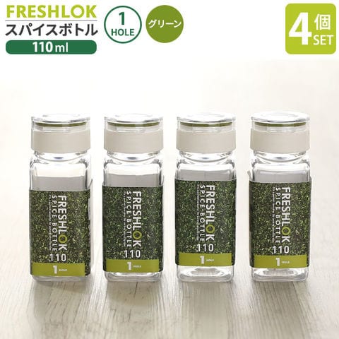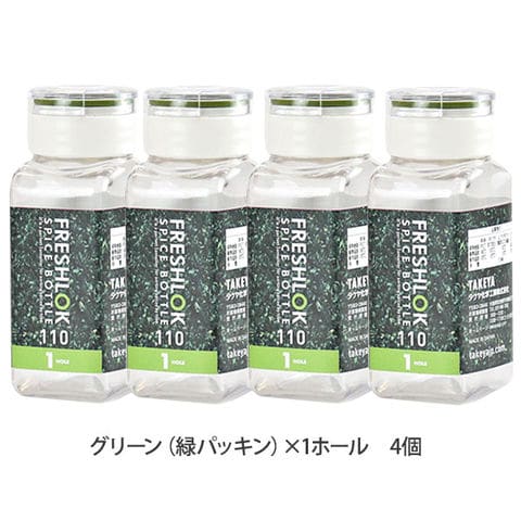 フレッシュロック スパイスボトル 1ホール 110ml グリーン(緑パッキン) 4個セット | 調味料 保存容器 密閉 詰め替え ボトル プラスチック キッチン 収納 塩 胡椒 1穴 FRESHLOK TAKEYA