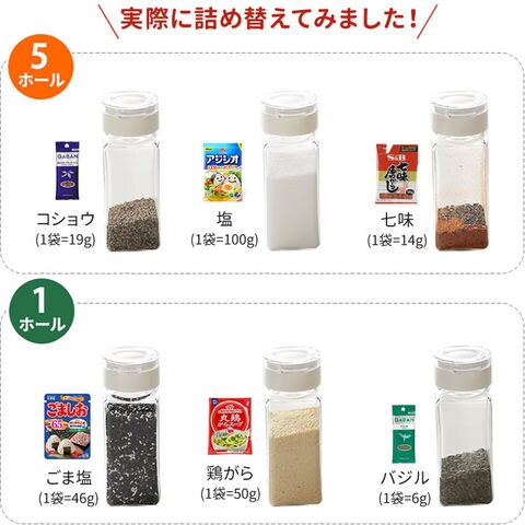 例えば・・・塩少々などには5穴 目分量で良いものには1穴がおすすめ。