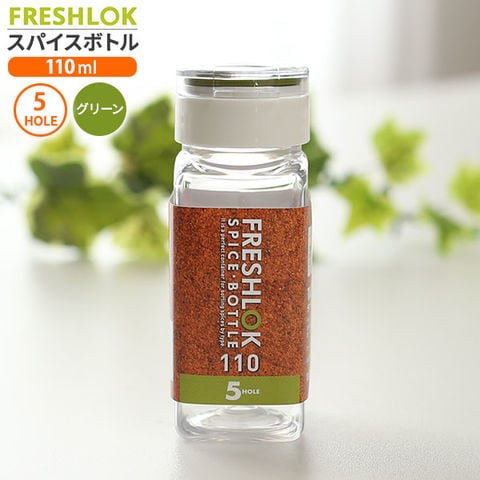 フレッシュロック スパイスボトル 5ホール 110ml グリーン(緑パッキン) | 調味料 保存容器 密閉 詰め替え ボトル プラスチック キッチン 収納 塩 胡椒 5穴 FRESHLOK TAKEYA