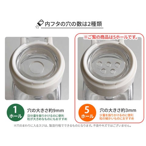 選べる内フタ 1ホール・5ホール調味料の種類に合わせて、1穴・5穴を選べます。