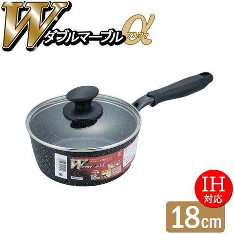 ダブルマーブルα IH対応 片手鍋 18cm RB-2121 | IH ガス火 OK 煮る 炒める 煮物 汁物 アルミ製 ふっ素樹脂加工 新生活 ひとり暮らし 摩擦に強い 丈夫 金属ヘラOK