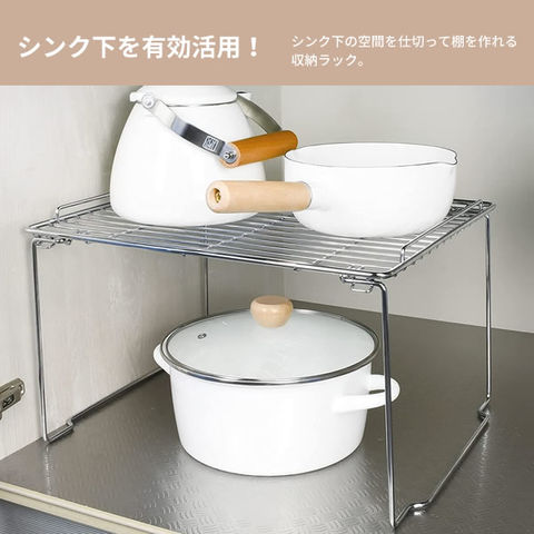 シンク下の空間を仕切って棚を作れる収納ラック。【2個セット】