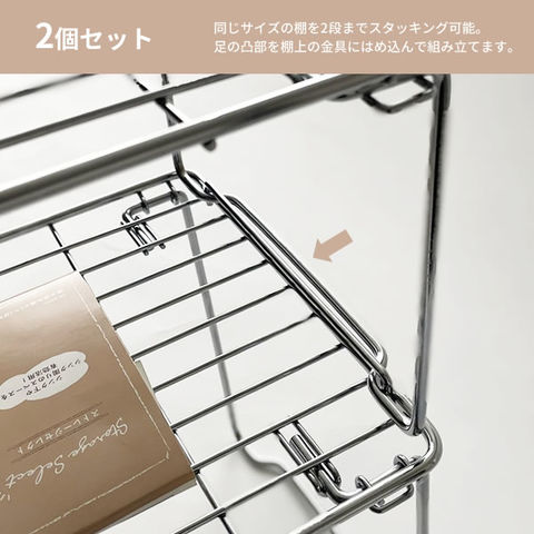 積み重ねて使用できます。 2つ使って2段棚にしたり、手前と奥に並べて広く使っても。
