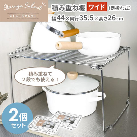 キッチン 収納 ストレージセレクト 積み重ね棚 ワイド(足折れ式) 幅44×奥行35.5×高さ26cm 2個セット HB-6067 | ラック 整理 棚 引き出し内 シンク下 段 仕切り ワイヤー 金属製