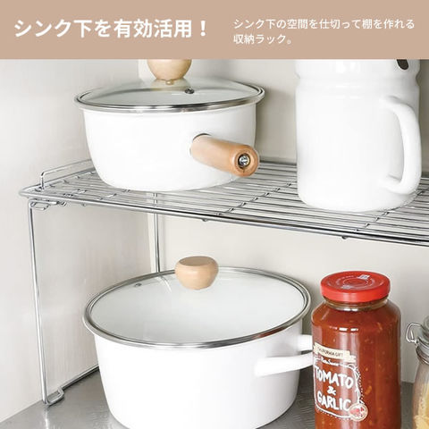 シンク下の空間を仕切って棚を作れる収納ラック。【2個セット】