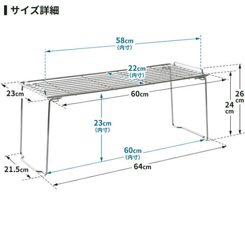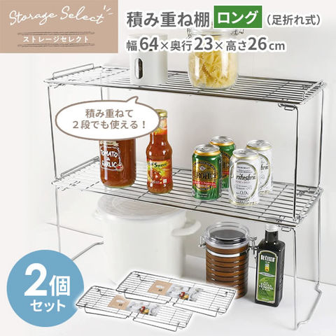 キッチン 収納 ストレージセレクト 積み重ね棚 ロング(足折れ式) 幅64×奥行23×高さ26cm 2個セット HB-6068 | ラック 整理 棚 引き出し内 シンク下 段 仕切り ワイヤー 金属製 素朴