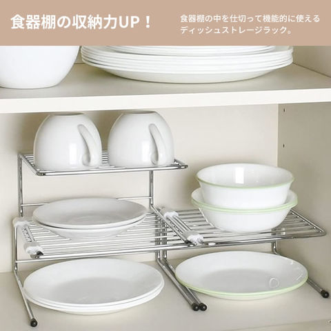 食器棚の中を仕切って機能的に使えるディッシュストレージラック。