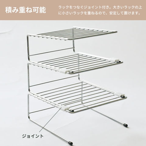 大きいラックの上に小さいラックを重ねる仕様なので、安定して置けます。