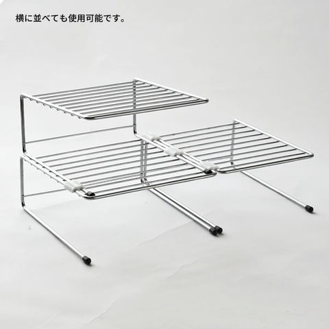 2個並べて使っても。※ラックの高さが違うため、2個横に並べた時高さは合いません。※横に並べるときは、足同士にジョイントを取り付け可能です。