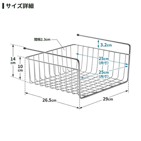 棚下 ラック ストレージセレクト ハンガーバスケット 幅29×奥行26.5×高さ14cm HB-6077 | ハンガーラック 棚下 引っかけ 棚板 掛ける ワイヤー 金属製 シンプル 素朴