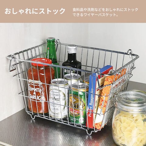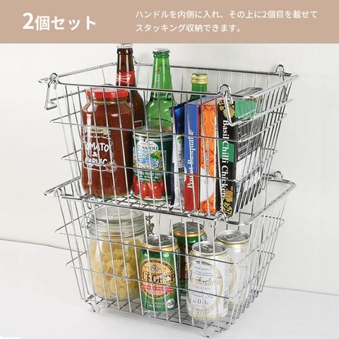 食料品や洗剤などをおしゃれにストックできる、ワイヤーバスケット。【2個セット】