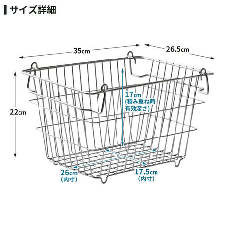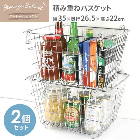 キッチン 収納 ストレージセレクト 積み重ねバスケット 幅35×奥行26.5×高さ22cm 2個セット HB-6080 | かご ワイヤー カゴ ストッカー おしゃれ ワイヤー 金属製 シンプル 素朴