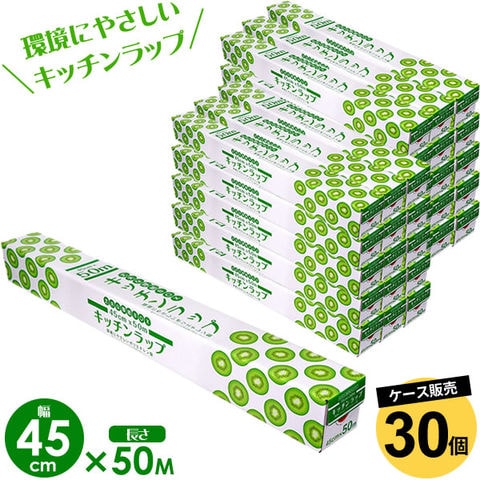 業務用ラップ キッチン ラップ 45cm×50m 30個セット(ケース販売) | 食品用 食品 野菜 保存 保管 環境にやさしい ダイオキシンが発生しない 台所用品 キッチン用品