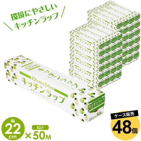 業務用ラップ キッチン ラップ 22cm×50m 48個セット(ケース販売) | 食品用 食品 野菜 保存 保管 環境にやさしい ダイオキシンが発生しない 台所用品 キッチン用品
