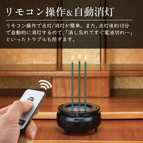 LED 線香 リモコン式安心LEDお線香ミニ3 FIN-1025 | 電池式 リモコン 火を使わない 電気 匂い なし 仏具 仏壇 線香立て 電気線香 自動消灯 リモコン付き 電子線香 安心 小さい 小型