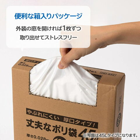 ゴミ袋 丈夫な厚口 ポリ袋 70L 半透明 100枚 HD-893 | 箱入り 厚手 70リットル 破れにくい ごみ袋 シャカシャカ コストコ ゴミ箱 収納 取り出しやすい 引越し 断捨離 厚み 0.03ミリ 剪定 枝木 サラサラ