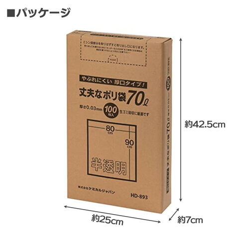 ゴミ袋 丈夫な厚口 ポリ袋 70L 半透明 100枚 HD-893 | 箱入り 厚手 70リットル 破れにくい ごみ袋 シャカシャカ コストコ ゴミ箱 収納 取り出しやすい 引越し 断捨離 厚み 0.03ミリ 剪定 枝木 サラサラのレビュー