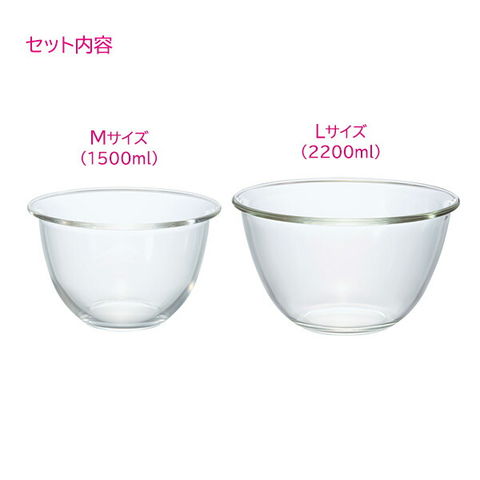 HARIO ハリオ 耐熱ガラス製ボウル 2個セット 1500/2200ml 各1個 MXP-2606 | 耐熱 ガラス 電子レンジ オーブン 調理 食洗機 OK 入れ子 混ぜやすい ミキシング ボウル