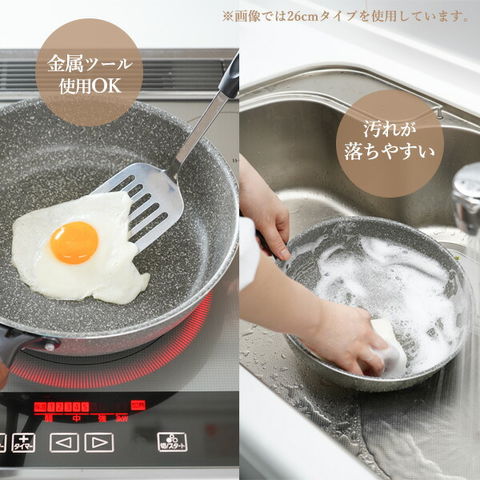 耐摩耗試験200万回をクリアし、こびり付きにくさが持続する耐久性の高いフライパン。