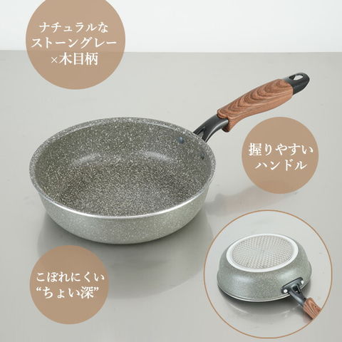 | 材質 | 本体/アルミニウム合金 内面/ふっ素樹脂加工(ダイキン/シルクウェアEZ) 外面/焼付塗装 底材質/ステンレス鋼 ハンドル材質/(主/フェノール樹脂、副/アルミニウム合金) |