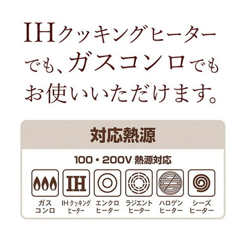 ガスコンロ、IHクッキングヒーターはもちろんのこと、シーズヒーター・ハロゲンヒーター・エンクロヒーター・ラジエントヒーターでご使用いただけます。