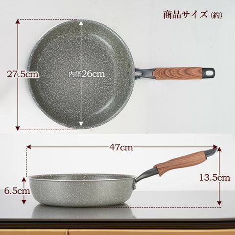 | 材質 | 本体/アルミニウム合金 内面/ふっ素樹脂加工(ダイキン/シルクウェアEZ) 外面/焼付塗装 底材質/ステンレス鋼 ハンドル材質/(主/フェノール樹脂、副/アルミニウム合金) |