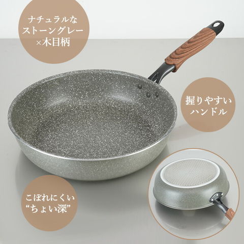 | 材質 | 本体/アルミニウム合金 内面/ふっ素樹脂加工(ダイキン/シルクウェアEZ) 外面/焼付塗装 底材質/ステンレス鋼 ハンドル材質/(主/フェノール樹脂、副/アルミニウム合金) |