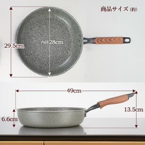 IH対応 フライパン イージーロング 28cm RB-2147 | 高耐久 ガスコンロ IH対応 こびり付きにくい 洗いやすい フッ素樹脂加工 長持ち 金属ツールOK アルミ製 深め 大型 ガス火