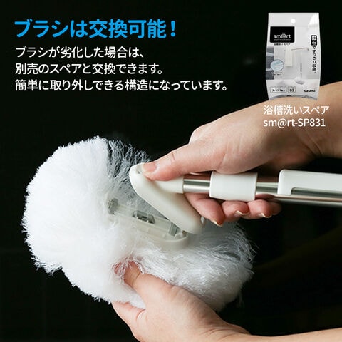 ブラシは交換可能ブラシが劣化した場合は、別売のスペア「浴槽洗いスペア(sm@rt-SP831)」と交換できます。