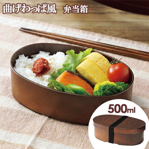 弁当箱 曲げわっぱ 曲げわっぱ風弁当箱 小判型 500ml ブラウン TW-07 | 女子 男子 大人 1段 小判型 電子レンジ対応 食洗機対応 日本製 おしゃれ