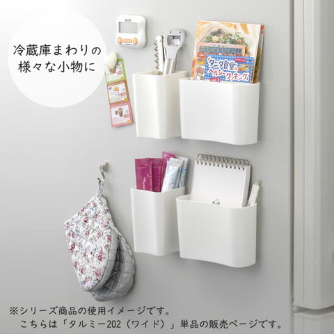マグネット付き 小物入れ タルミー 202(ワイド) ピュアホワイト 5202 | マグネット キッチン 日本製 磁石 冷蔵庫 収納 デスク 玄関ドア ペン立て 小物整理 クリップ