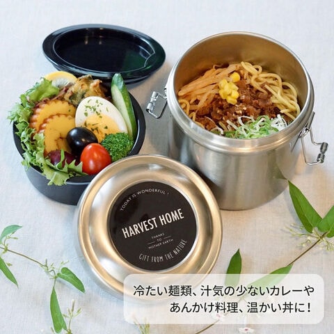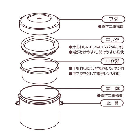 本体とフタは、高い保温力の真空二重構造で、冷たい麺類、汁気の少ないカレーやあんかけ料理、温かい丼が楽しめます。