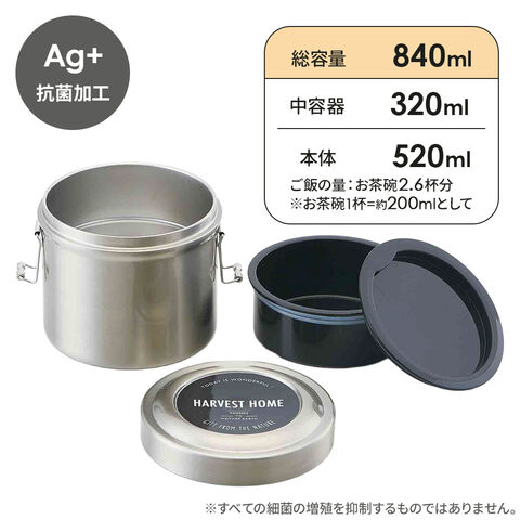 容量(約):総容量/840ml(本体520ml、中容器320ml)