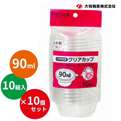 feeling クリアカップ 90ml 10組入×10個セット | 使い捨て容器 フタ付き テイクアウト イベント 祭り フェス 持ち帰り 業務用 フルーツ ソース 日本製