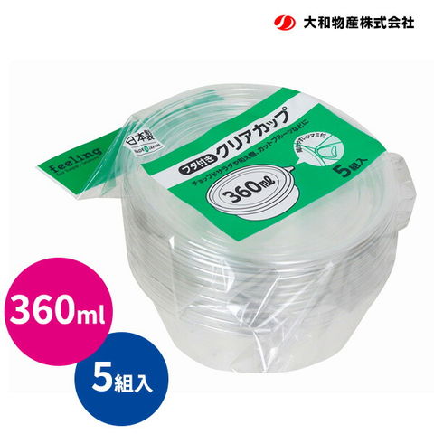 feeling クリアカップ 360ml 5組入 | 使い捨て容器 フタ付き テイクアウト イベント 祭り フェス 持ち帰り フルーツ サラダ 和え物 日本製