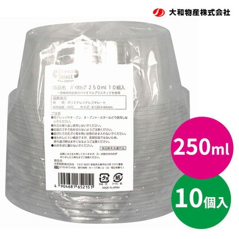 ふた付 使い捨て容器 Green Select バイオカップ 250ml 10組入 | バイオPET使用 フタ付き テイクアウト お祭り イベント 持ち帰り フェス 透明容器 サラダ デザート 和え物 日本製