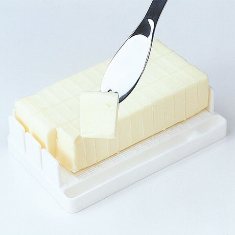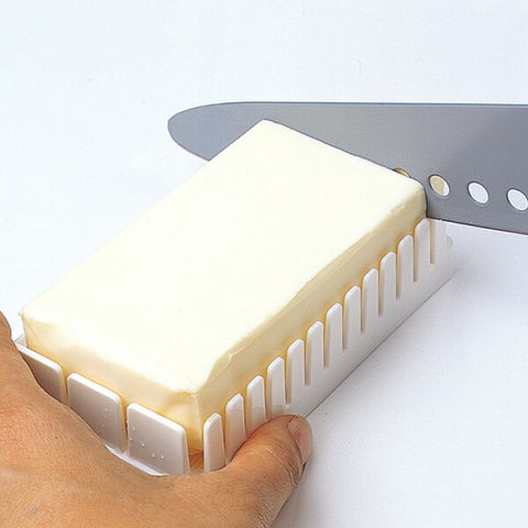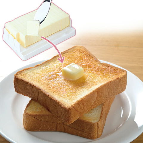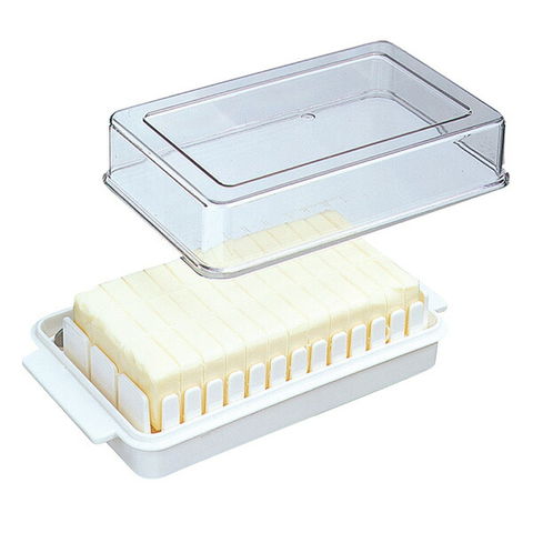 計量せずにバター適量を手早く切れる、カッティングガイド付のバターケース。