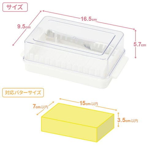 | 対応バターサイズ(約) | 幅15×奥行7×高さ3.5cm以内 |