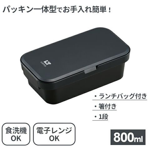 弁当箱 男子 ランタスWS 1段(バッグ付) WS-800 800ml ブラック 3500 | 大容量 ランチバッグ付 メンズ パッキン ロック レンジ対応 食洗機対応 箸付き 漏れにくい ランチボックス