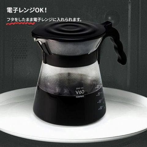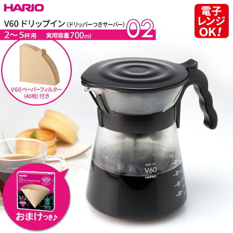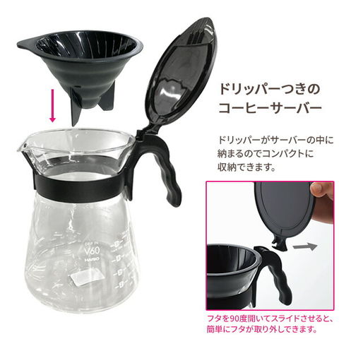 HARIO ハリオ V60 ドリップイン(フィルターおまけ) ブラック | コーヒー ドリッパー サーバー ポット 珈琲 ドリップ ドリッパー付きサーバー コンパクト収納 円すい形ドリッパー フタつき
