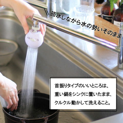 ノズルの向きが変えられる首振りタイプなので、シンクの中も端までラクラク洗えます。