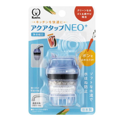 浄水蛇口 アクアタップネオ+ CQN-2096 | 活性炭 ストレートタイプ 水道水 ろ過器 ゴミ取り サビ除去 水道水 自在水栓対応 日本製