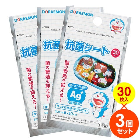 ドラえもん 抗菌シート 30枚入×3個セット DM-3 | 子ども 弁当 抗菌シート 銀イオン Ag+ 使い捨て 菌 抑制 日本製 キャラ弁 キャラクター柄 かわいい 遠足 デコ弁