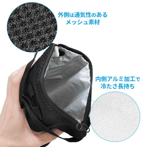 内側にはアルミ加工の生地が使用されており、冷たさが長持ち。外側は通気性のいいメッシュ素材です。