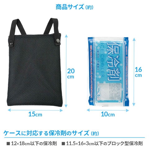 スペックサイズ(約):保冷剤ケース/幅15×奥行20×高さ1.5cm 保冷剤1個あたり/幅16×奥行1×高さ10cm
