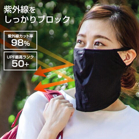 日焼け対策 UV リアリークール フェイスカバー AP-437611 | 日焼け防止 紫外線 ガード UVカット 紫外線対策 保冷剤付き 首 顔 接触冷感 フェイスマスク レディース 冷感マスク 抗菌 防臭 伸縮素材