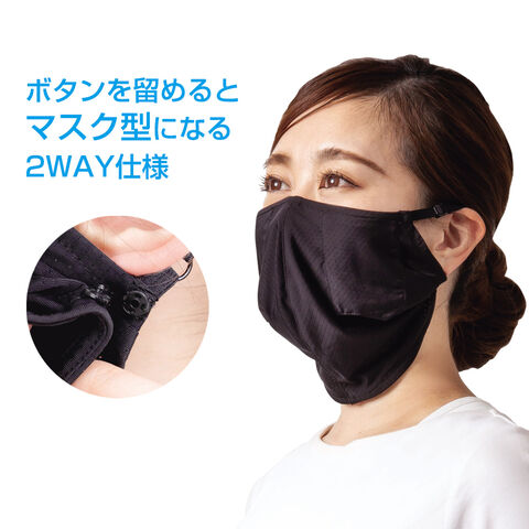 保冷剤を入れるポケットがついた、ひんやり素材のフェイスカバー。