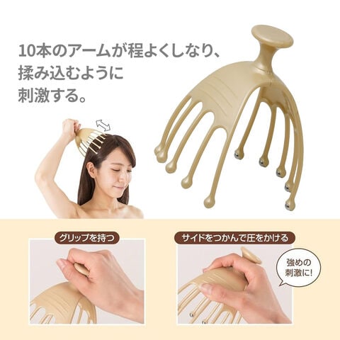 10本のアームで挟むようにもみ上げて、頭皮を動かして血行を良くする頭皮ケアグッズ。